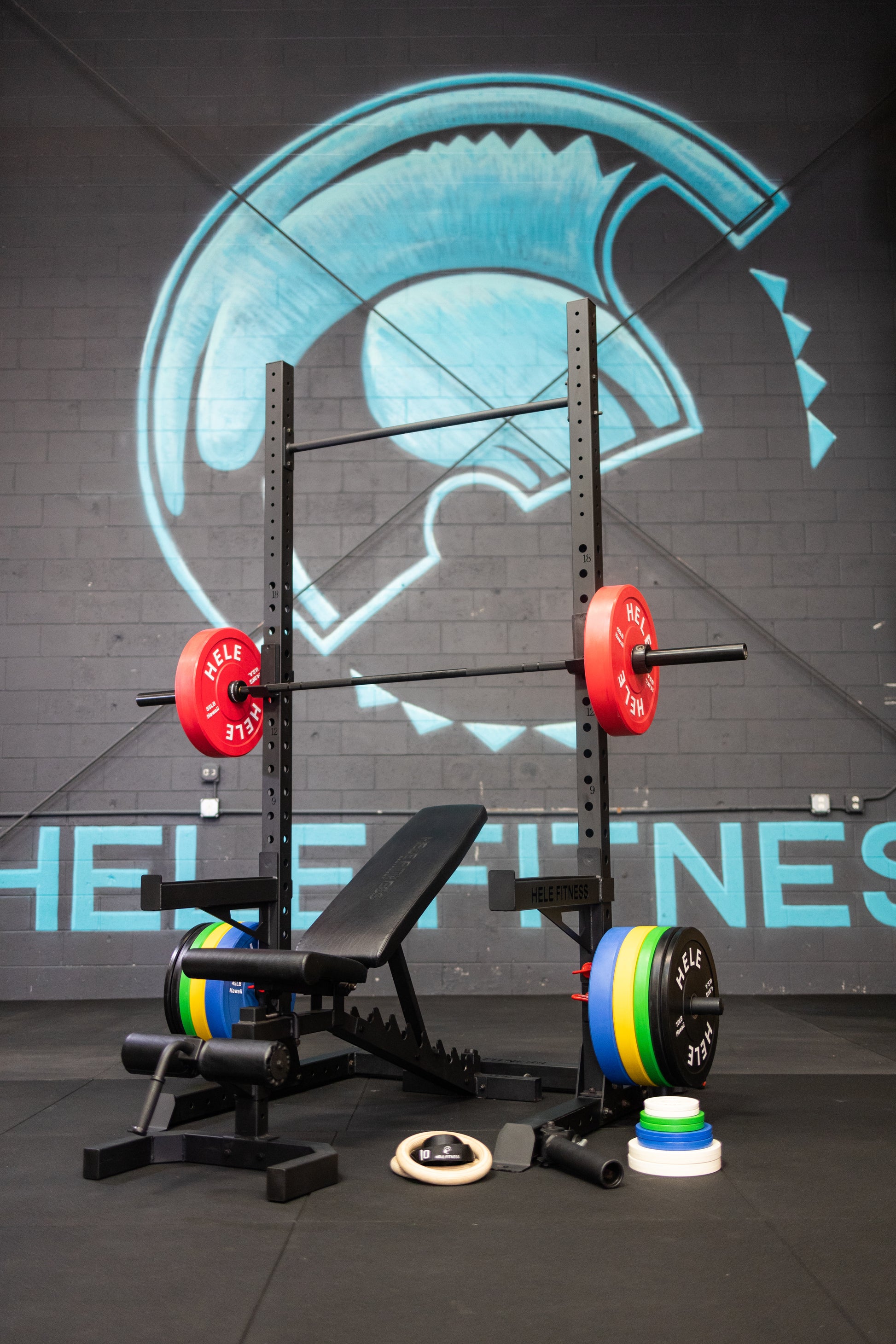 - Hele Barbell (choice of 45 or 35lb black chrome barbell)